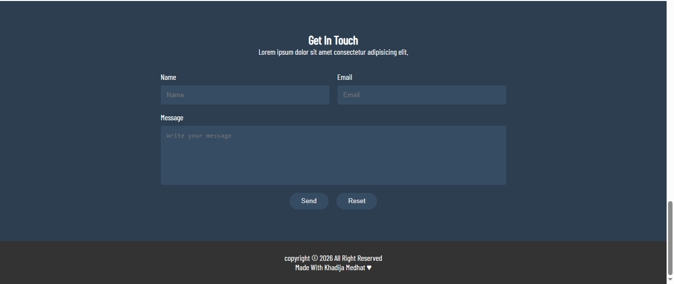 Hi! I'm Khadija Medhat, a Computer Engineering student and a Frontend Web Developer who enjoys turning ideas into beautiful and interactive web experiences. My journey with web development started with simple curiosity — I always wondered how websites actually work behind the scenes. What began as curiosity quickly turned into something I genuinely enjoy doing. I love transforming ideas into real, working websites using clean HTML, CSS, and JavaScript. For me, frontend development is more than just writing code — it's about creating smooth and enjoyable user experiences.